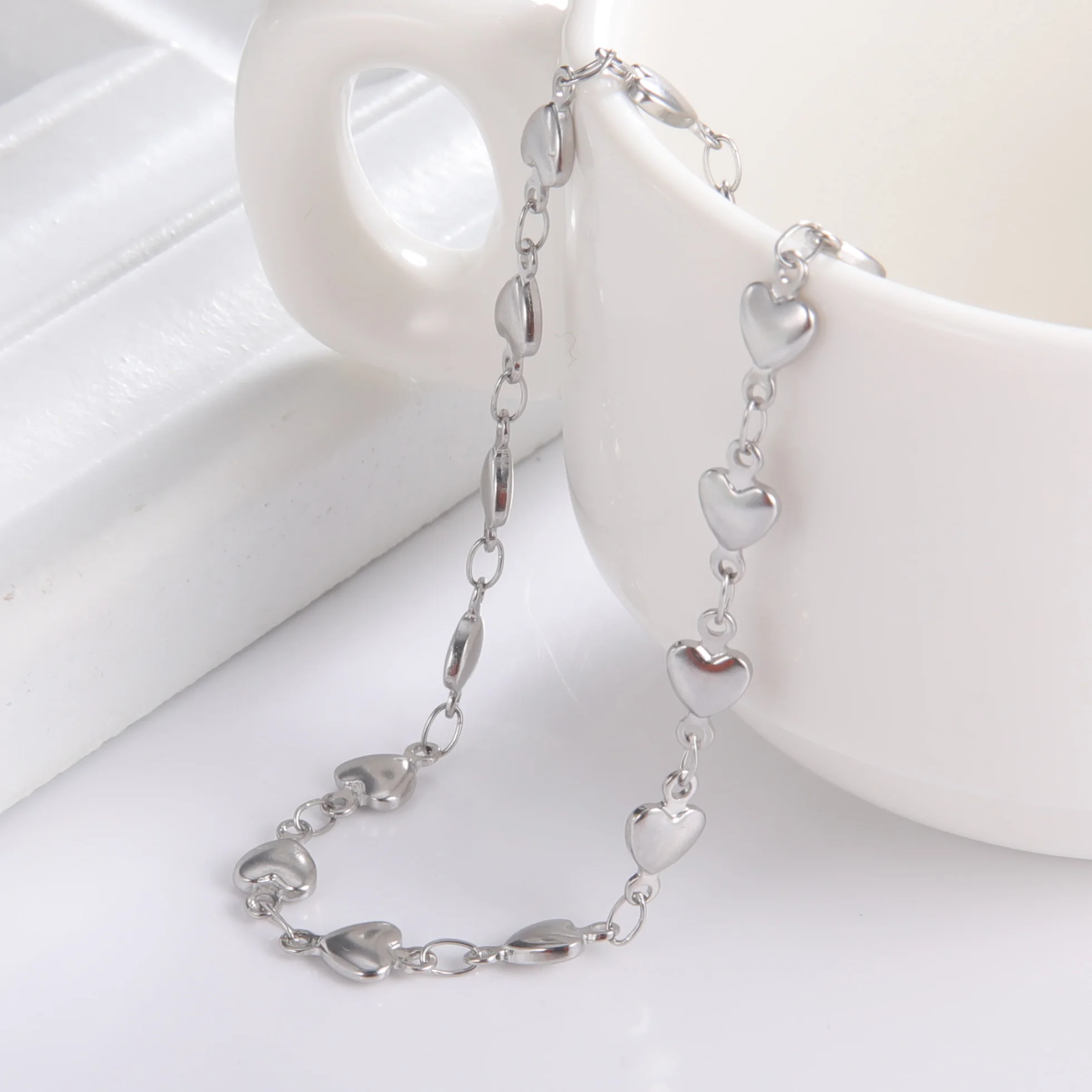 Fashion Heart Chain Foot Anklet for Women Girl Stainless Steel Beach Leg Ankle Bracelet Unfading Jewelry Best Friend Gift